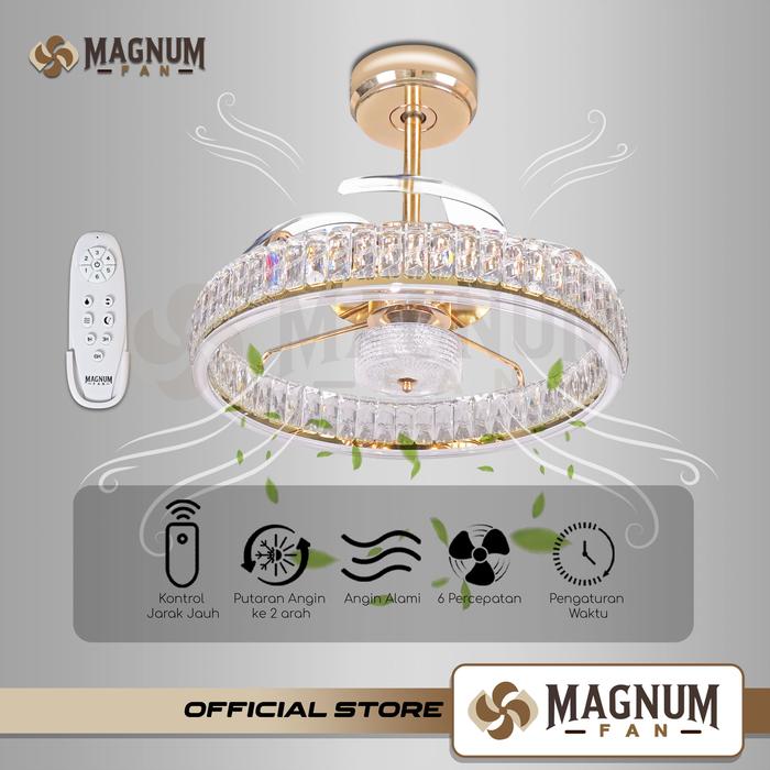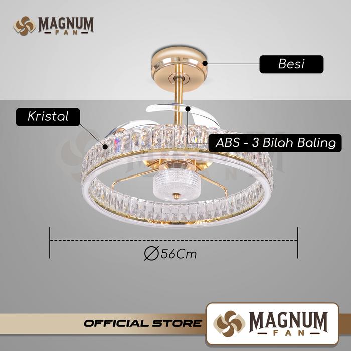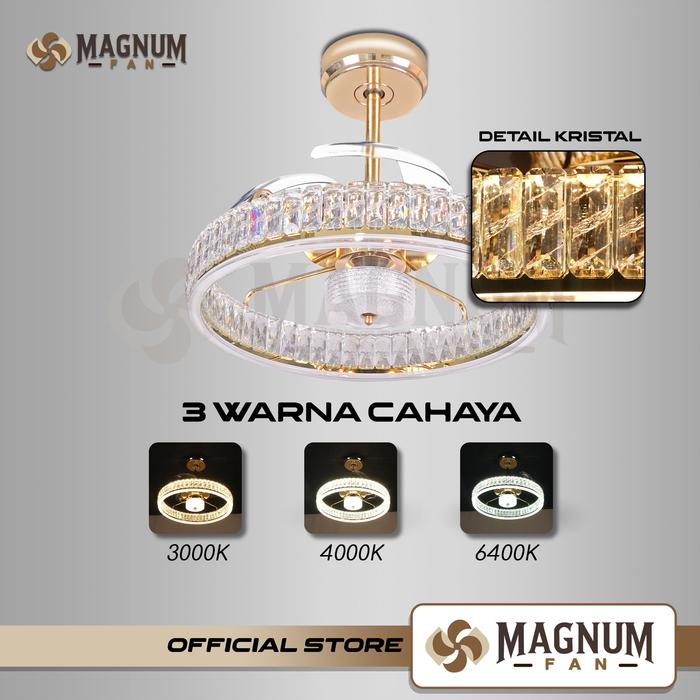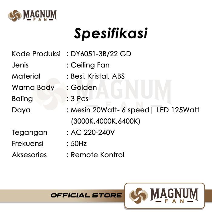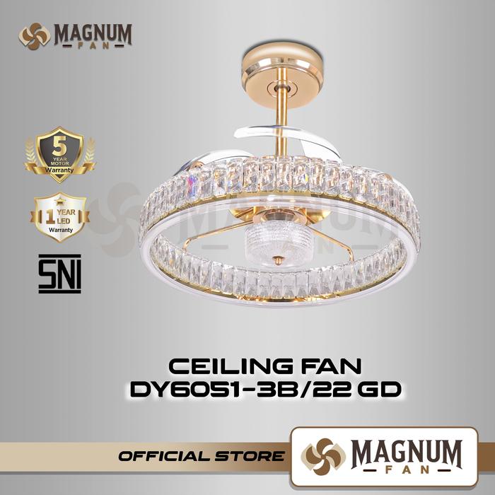 Ceiling Fan Kristal LED 125W Golden 3 Baling Remote Control Type DY6051-3B/22 GD – Magnum Fan